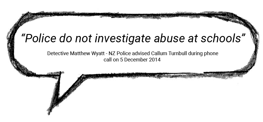 With regards to the information we have provided you specific to the allegations of abuse of our son and other students, by school management and staff, you were clear the information was not sufficient to warrant Police investigation, with Inspector Steele going as far as saying that there would never be a prosecution.